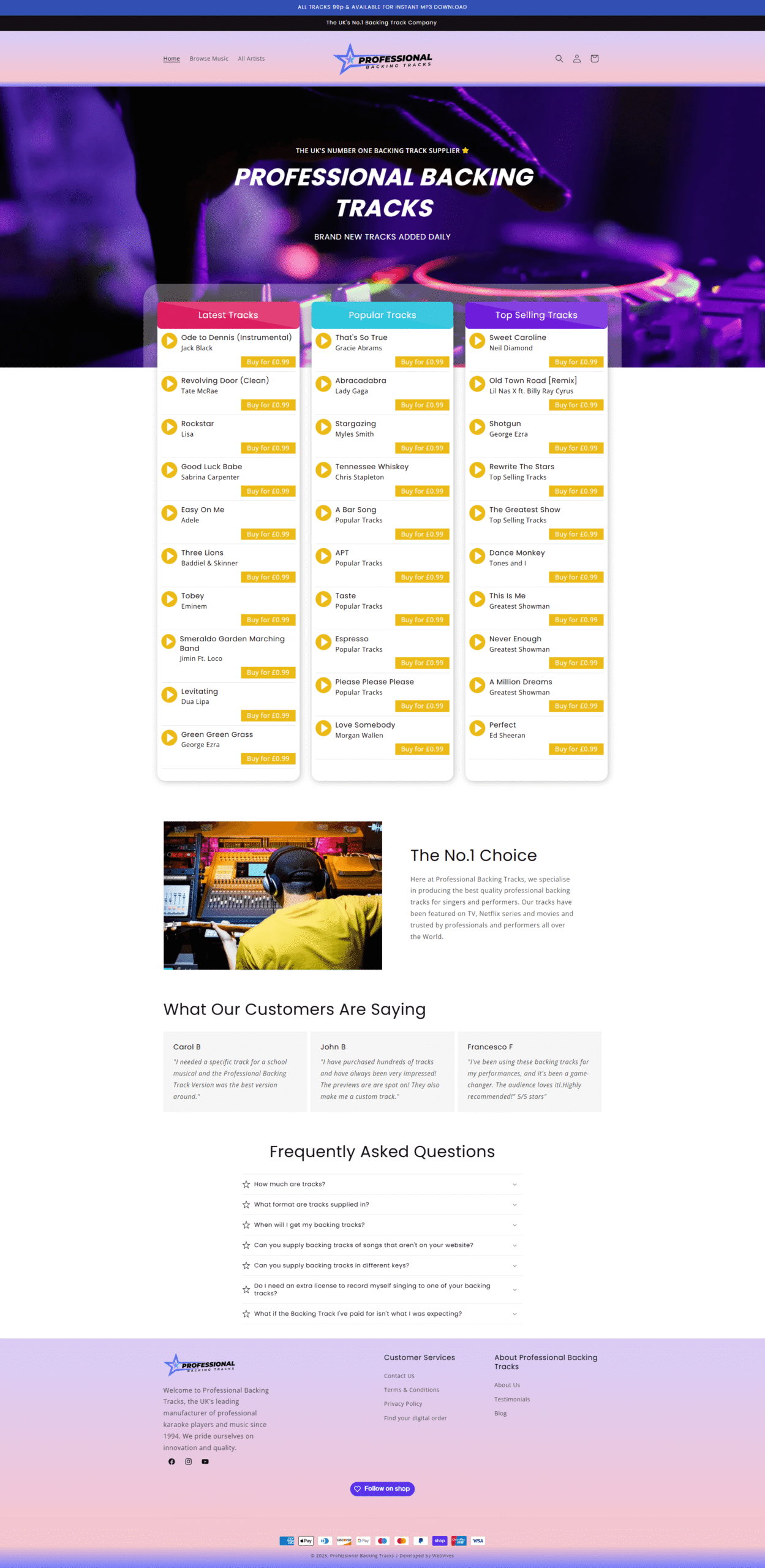 Developed a high-performance e-commerce platform tailored for musicians seeking premium-quality backing tracks.Integrated audio preview functionality, category-based filtering, and a streamlined purchasing experience.
